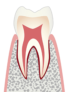 - 歯周ポケットの奥深くに歯垢・歯石が溜まります。炎症が広がり、歯槽骨も徐々に痩せていきます。痛みはまだありません。